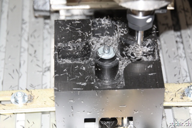 Nach dem Zentralstück musste auch die Rotorkopfabdeckung gefräst werden. Diese wurde in 3D konstruiert und mittels Estlcam Software aufbereitet